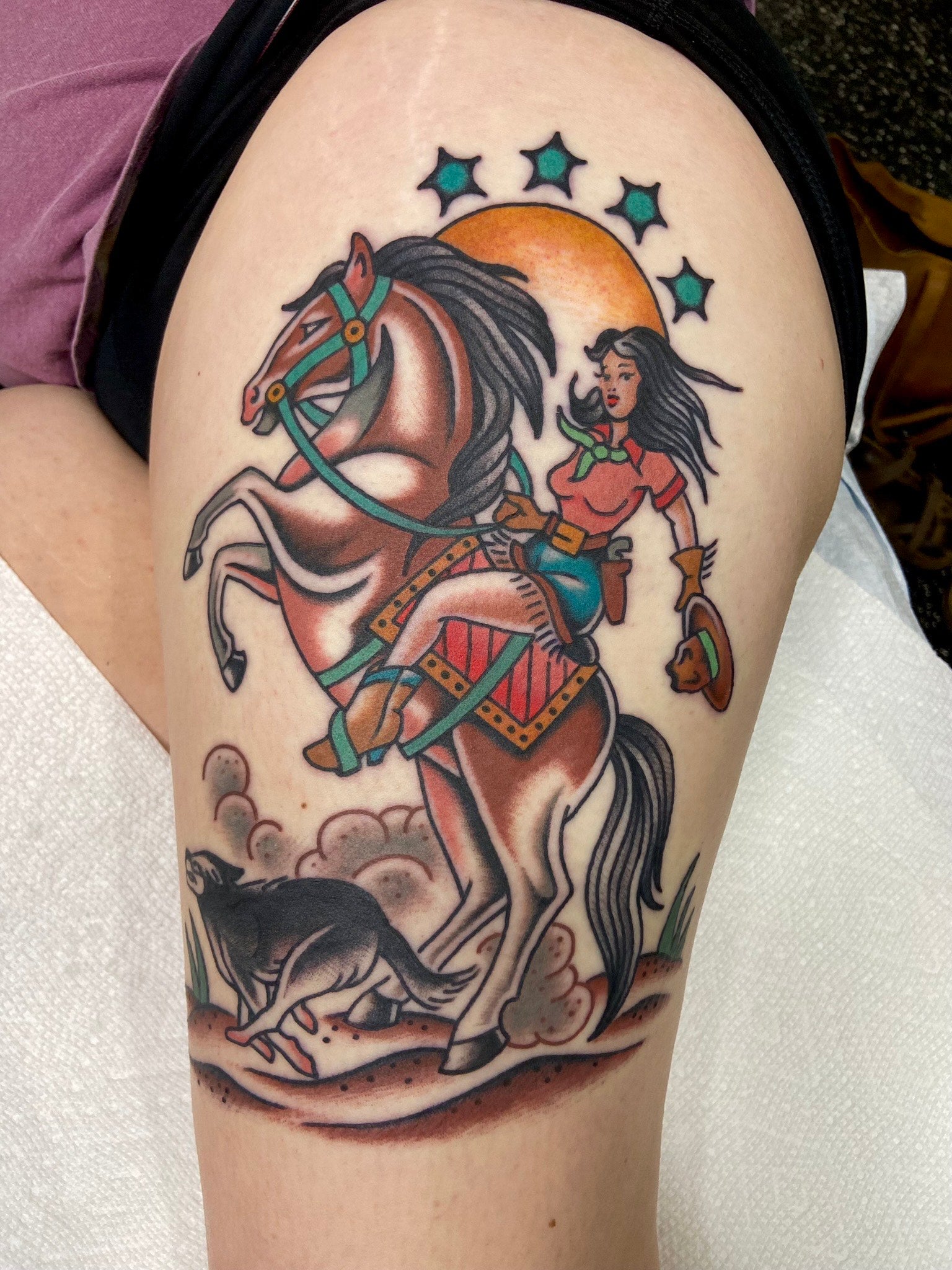 Cait grew up in a military family moving across the country until she settled in Nashville at a young age. She studied painting and sculpture in college, later finding her career path in tattooing. Cait apprenticed under adamthekid here at Kustom Thrills in 2017.