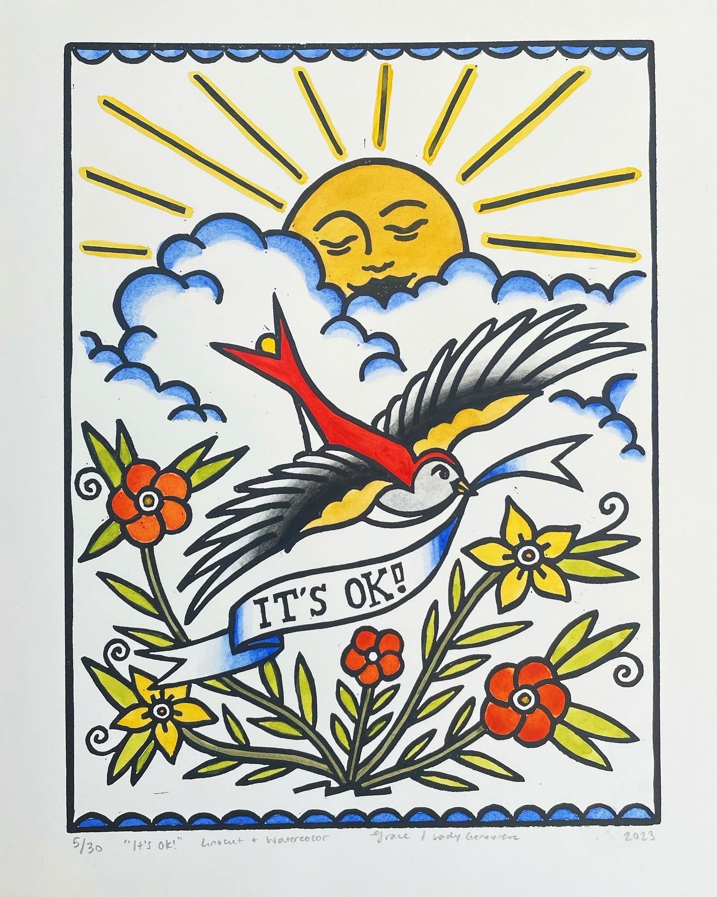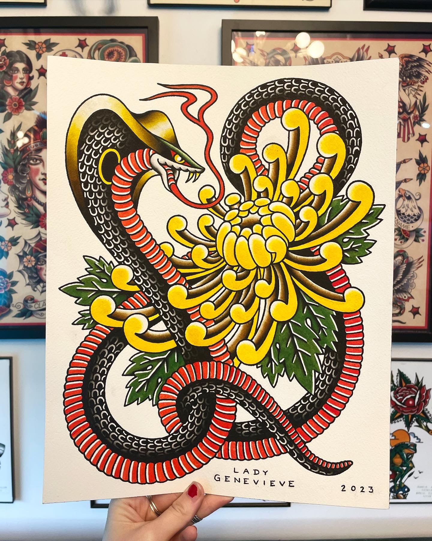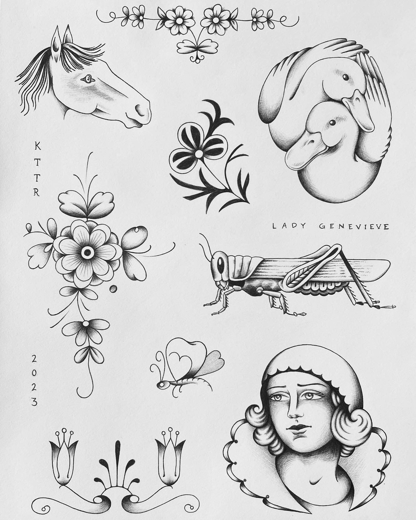 Hi I’m Grace, also known as Lady Genevieve. I’m a newly licensed tattoo artist and freelance painter and designer.